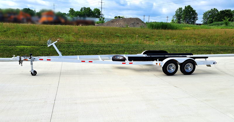 We currently have a pre‑owned 30‑foot boat trailer available, suitable for boats up to approximately 25 feet long. This is a great option for customers looking for a large boat trailer near Cleveland at a more affordable price point. Why not save some money with a used boat trailer, save the money for the boat!